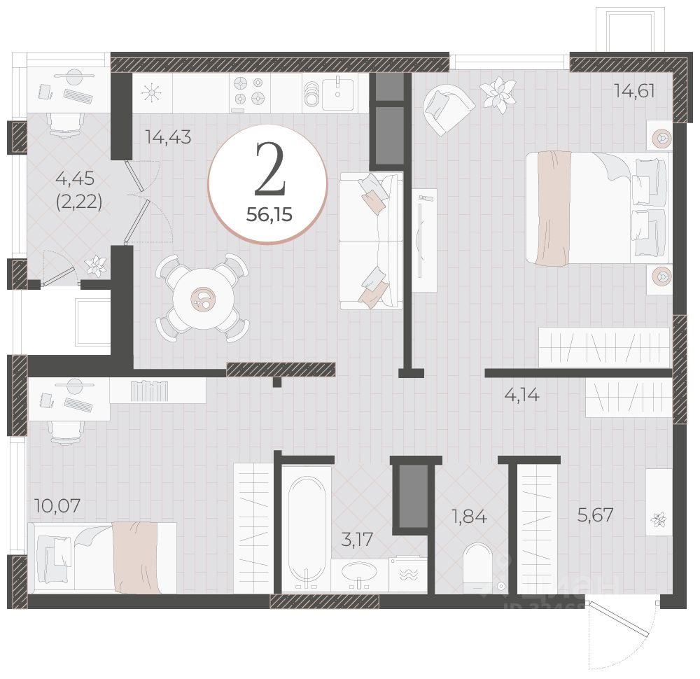 Общая площадь56,15 м2