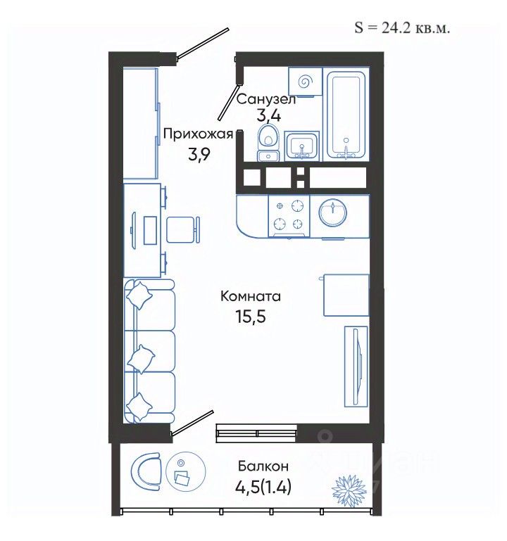Общая площадь24,2 м2
