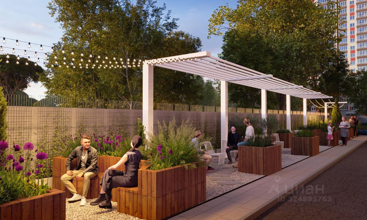 Двор комплекса закрыт от автомобилей и случайных прохожих. Для автовладельцев предусмотрен двухуровневый подземный паркинг на 650 мест. По всему периметру двора размещены видеокамеры. Внутренний двор благоустроен: предусмотрены пешеходные дорожки, скамейки и деревянные мини-беседки с розетками. Также спроектированы детские игровые площадки, уличные тренажеры и спортивная площадка для командных игр.