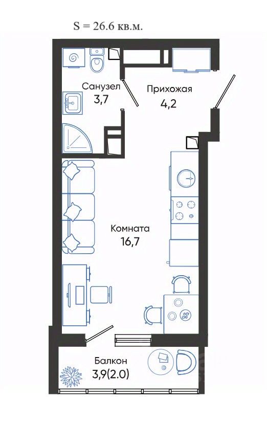 Общая площадь26,6 м2