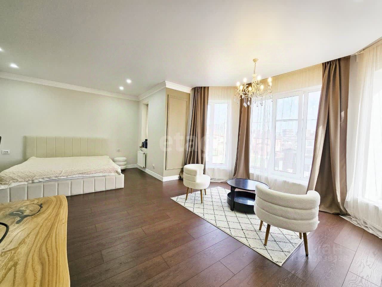Характеристики: - 3 просторные спальни (33 м², 17 м², 16 м²) - Гостиная 33 м² - Кухня-столовая 25 м² - 2 санузла: с душевой и с ванной - Котельная