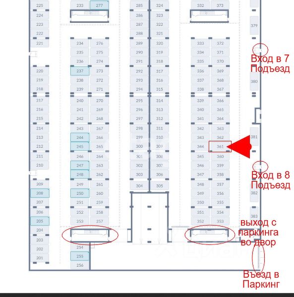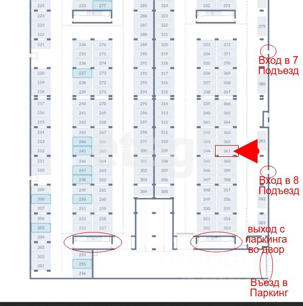 Продается машино - меcто ( паркинг ) ЖK Облака 2 ! у 7 и 8 подъезда ! на - 1 этаже Новороссийск, Куникова 47г, место 361