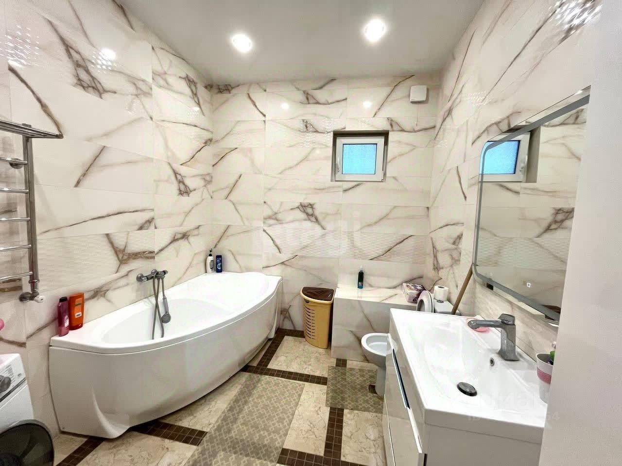 Высококачественные материалы, такие как двери из массива, натяжные потолки и дорогая плитка, гарантируют долговечность и элегантный внешний вид.