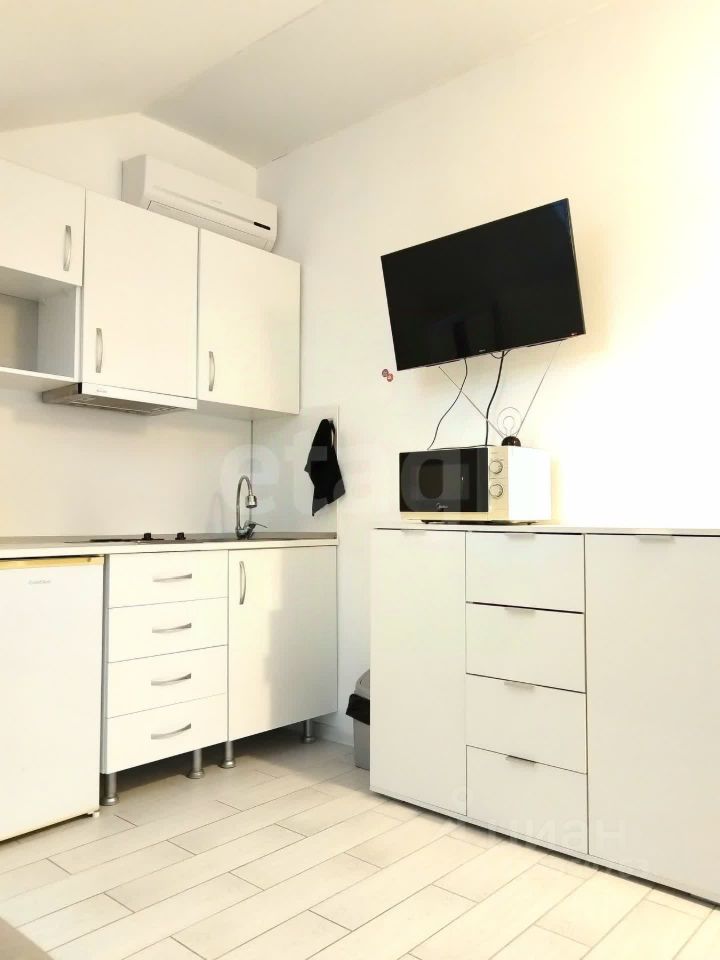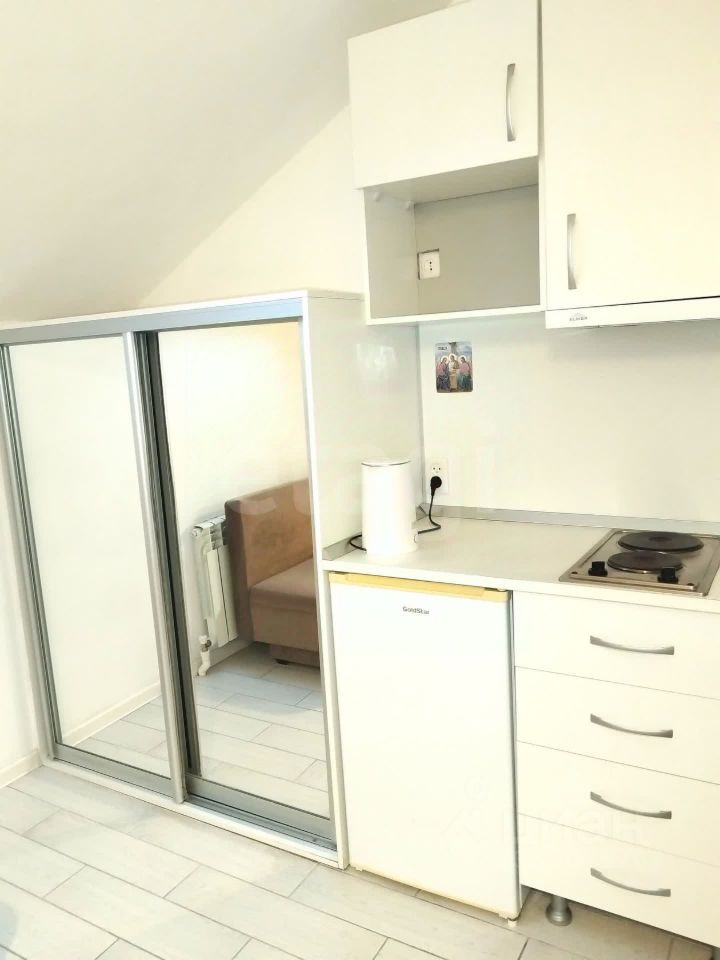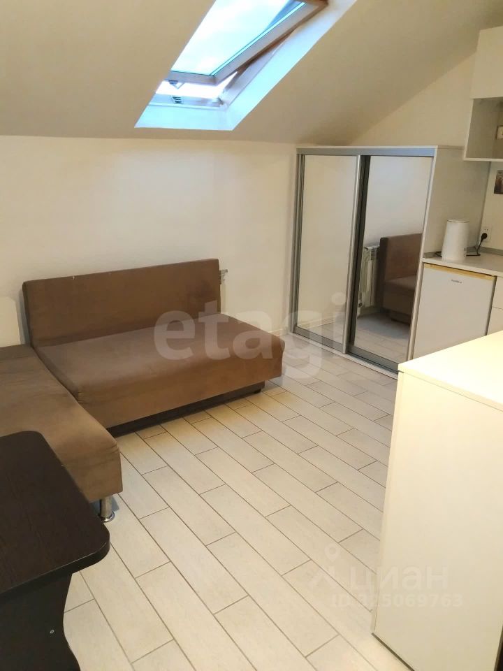 Студия находится на мансардном этаже. В студии выполнен качественный ремонт: на полу плитка для практичности, санузел в керамограните. Мебель остается вам. Вода есть всегда.