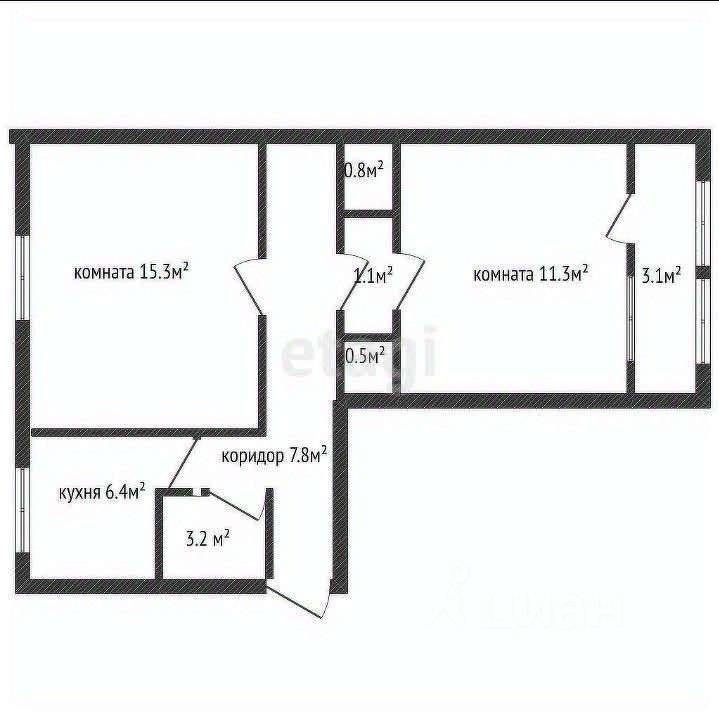 Продается двухкомнатная квартира на пятом этаже.