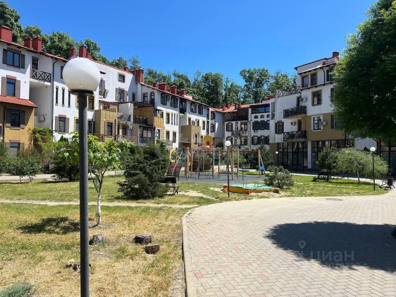 Комплекс имеет большую закрытую территорию с концепцией ''Двор без машин'', что делает его идеальным для семей с детьми. Здесь вас ждут детская площадка и множество зелени. Ключевыми преимуществами являются круглосуточная подача воды (с накопительной емкостью), проведенный газ и электролиния. Все окна квартиры выходят в Цемесскую рощу, создавая атмосферу тишины и умиротворения.