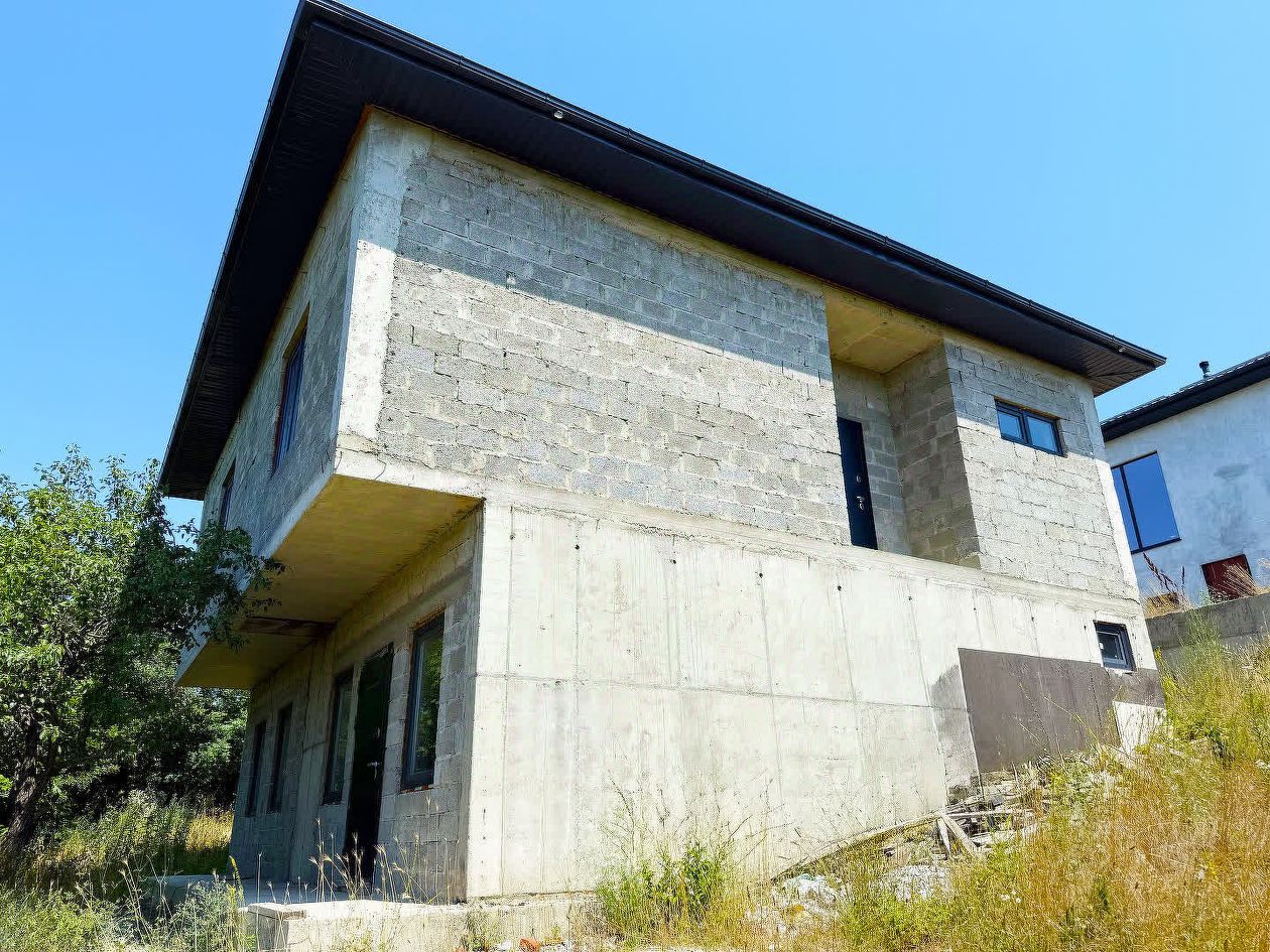 Дом выполнен по классической монолитно-каркасной технологии. Цокольный этаж-фактически 1-й этаж, цельная заливка бетоном, с гидроизоляцией и утеплением экструзированным пенополистиролом. Второй этаж - заполнение стен керамзитовыми блоками. Толщина стен 300 мм. Снаружи стены планируются утеплением 100 мм минеральной (!) ватой (материал частично имеется). Все перекрытия в доме ж/б, в том числе чердачное(!). На чердак предусмотрен инспекционный выход. В доме 5 больших полноценных спален, два санузла, котельная и большая гостиная. В стоимость дома входят также ограждение (решетчатый забор), плитка и кирпич для перегородок, если потребуется. Полное юридическое сопровождение. Льготная ипотека и гарантия безопасности сделки!.