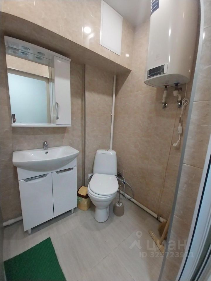 Студия полностью готова к проживанию или сдаче в аренду. Установлена сантехника, выводы под стиральную машину, мебель частично остаётся.
