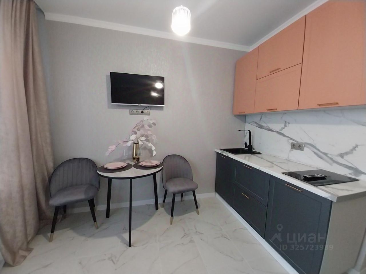 Описание объекта Студия с монолитно-каркасными стенами и центральным отоплением выполнена в современном стиле с использованием качественных материалов. В жилой зоне — уютный диван для отдыха, обеденный стол со стульями, телевизор. Кухня полностью оснащена всем необходимым: электрическая плита, холодильник и много места для хранения. Санузел совмещённый, с душевой кабиной, раковиной и зеркалом — всё для вашего комфорта. Балкон застеклён, а из окон открывается захватывающий вид на море, который будет радовать вас каждый день.