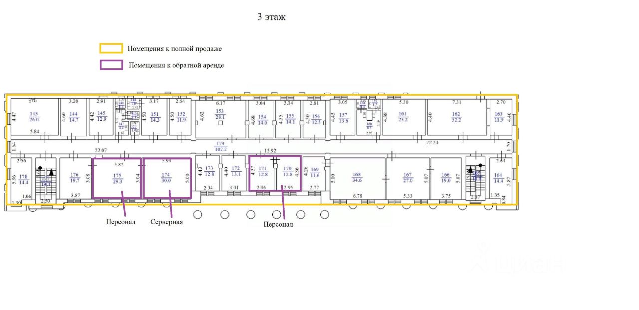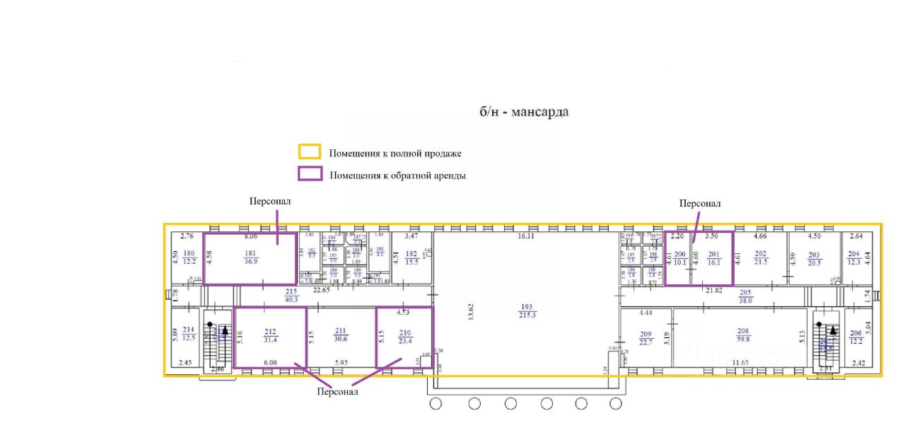 Обязательное условие: На объекте размещен персонал в количестве 22 чел. и оборудование ПАО ''Ростелеком'' при продаже объекта в обратную аренду на 11 мес. войдут помещения 1 и 2 этажей, ориентировочной площадью 864,70 кв.м.