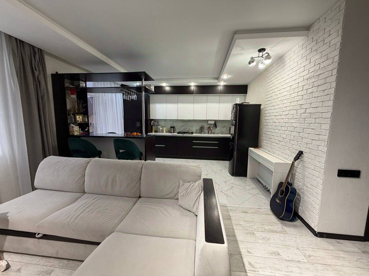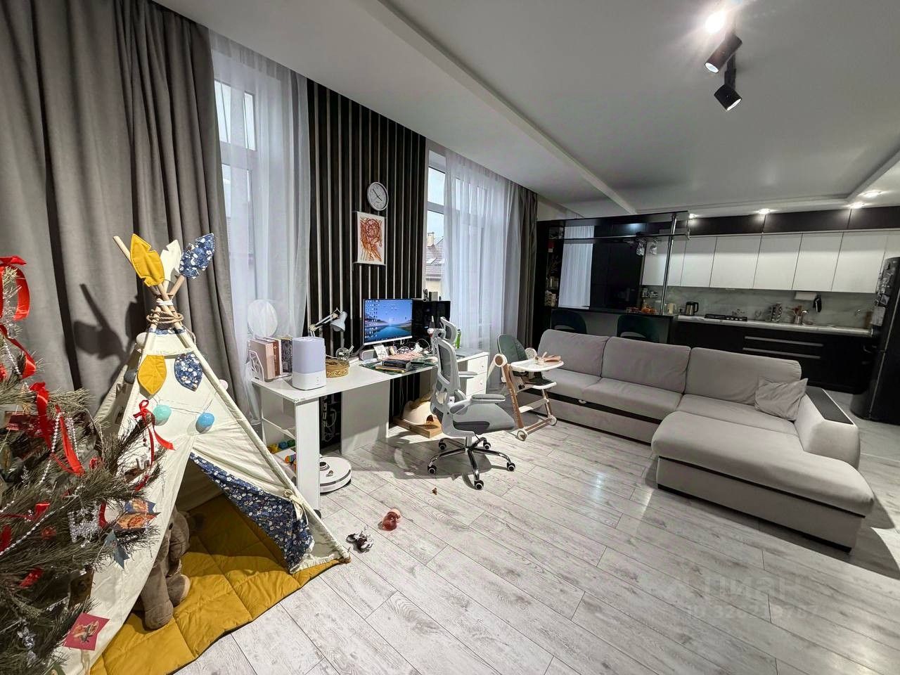О планировке и ремонте: • Площадь 62 кв. м: Огромное пространство, где каждый метр функционален. • Умное зонирование: В квартире выделена и отгорожена отдельная спальная зона, что фактически делает её полноценной ''евродвушкой''. • Дизайнерский ремонт: Использовались только дорогие и качественные материалы. Интерьер продуман до мелочей, выглядит стильно и современно. • ''Заезжай и живи'': В квартире остается вся мебель.