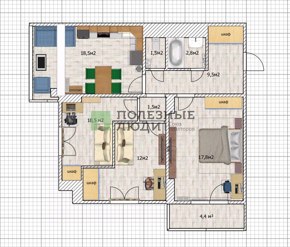 В продаже полноценная 3х комнатная квартира с большой кухней. Большая угловая комната 25м2 разделена ГКЛ стеной на 2 детские, в которых полноценные спальные места, выделены места под просторные шкафы или гардеробную систему.