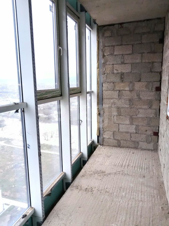 Квартира на 22 этаже, очень просторная и светлая. Выполнена в черновой отделке. Санузел слитный. Большой балкон, панорамное остекление, вид на горы.