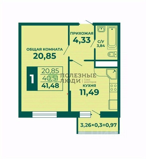 Общая площадь: 41 5 м² Жилая комната: 21 м² (светлая и уютная) Кухня: 11,5 м² (просторная для семейных обедов) Совмещенный санузел Балкон: 3,3 м² с качественным остеклением Высота потолков: 2,8 м Коммуникации: накопительные баки для воды.
