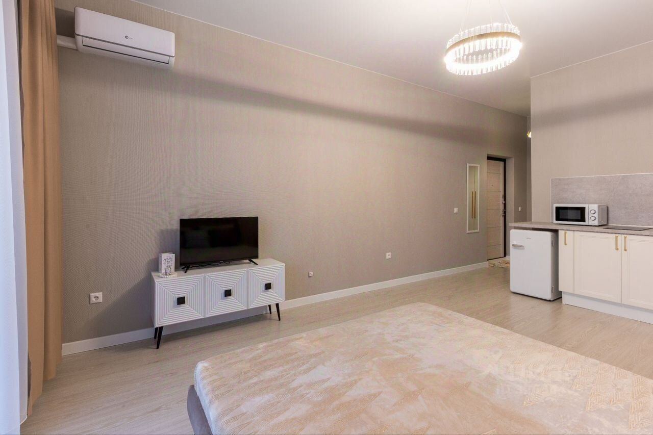Студия в ЖК Босфор.Все необходимое для проживания.Очнгь в комфортный ЖК. На территории обилие магазинов.Чудесная придомовая территория. Гриль-зона дня жильцов.До пляжа Алексино 5 мин на машине.Сдается на долгосрок!