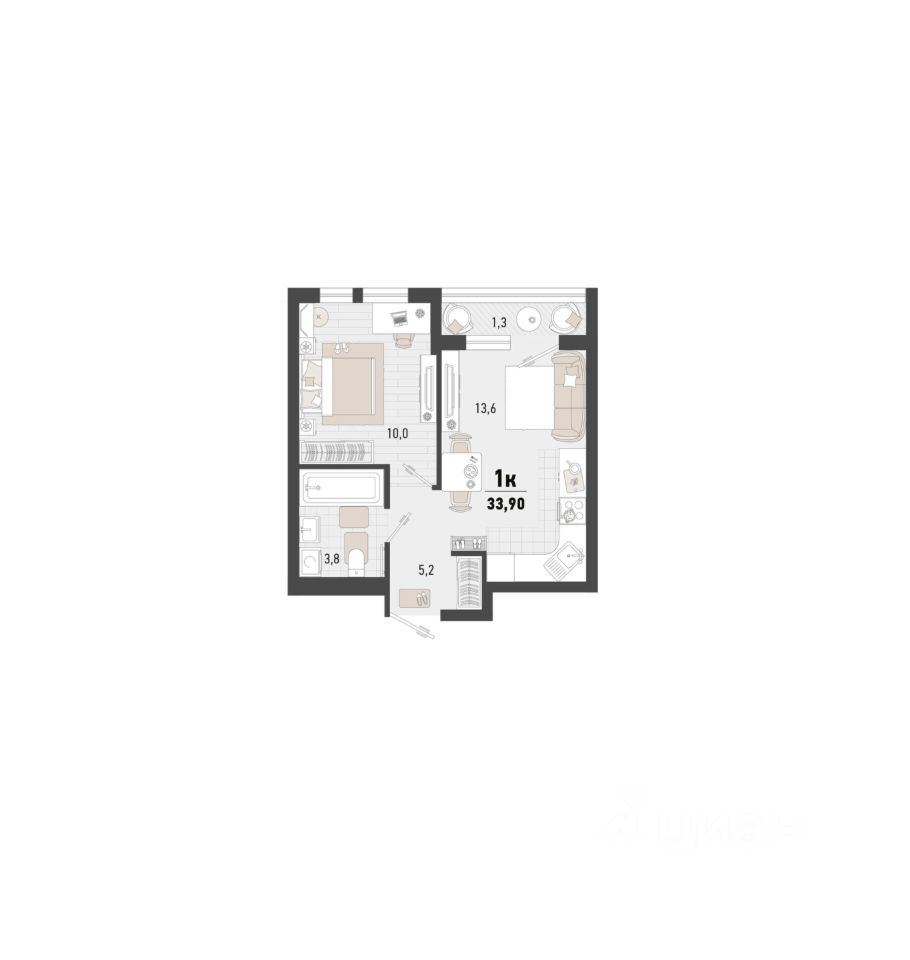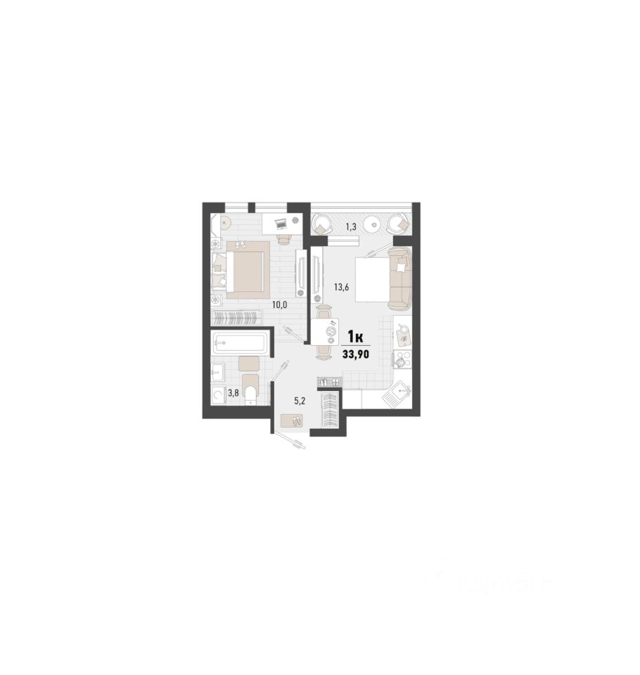 Общая площадь33,9 м2