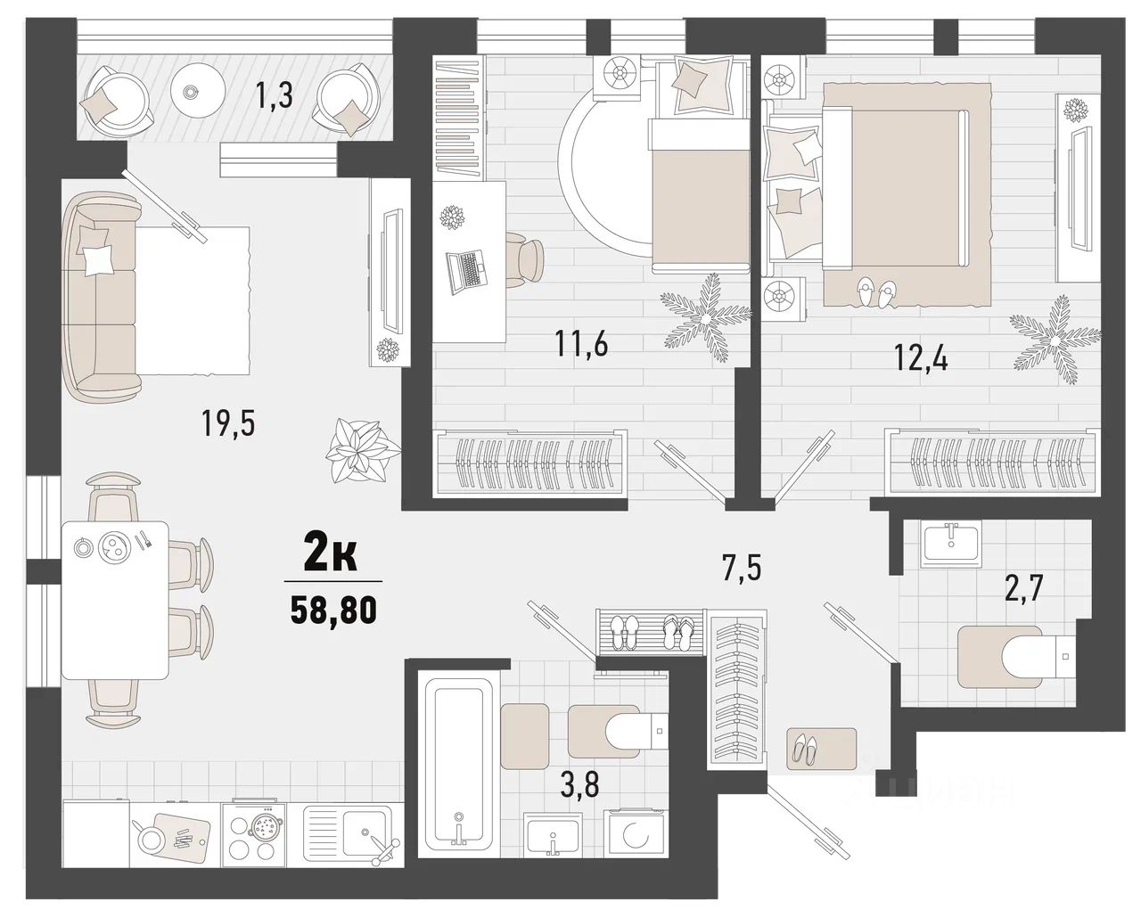 Продаётся 2-комнатная квартира в строящемся доме (Дом 4В), срок сдачи: II-кв. 2027, общей площадью 58.8 кв.м., на 12 этаже. Жилой комплекс ''Барса'' расположился в самом живописном Южном районе Новороссийска, всего в 15 минутах ходьбы от пляжа ''Алексино''. Море будет видно даже из окон невысоких этажей. Проект объединяет просторные квартиры с панорамными окнами, продуманные зоны отдыха и площадки для спорта, прогулочный бульвар, беседки и уникальные арт-объекты. В жилом комплексе запланированы детский сад на 380 мест и школа на 1 750 мест.