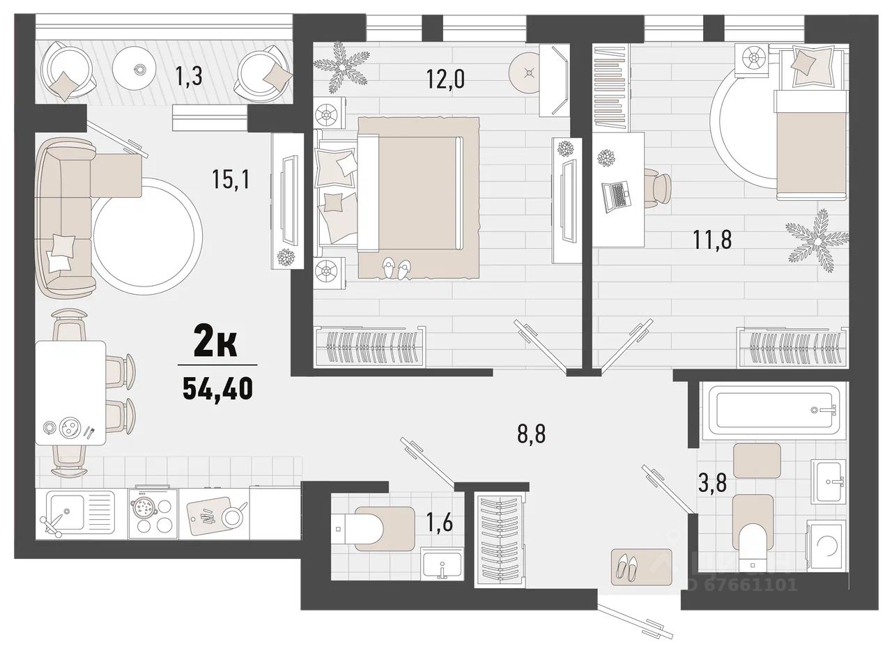 Продаётся 2-комнатная квартира в строящемся доме (Дом 4В), срок сдачи: II-кв. 2027, общей площадью 54.4 кв.м., на 10 этаже. Жилой комплекс ''Барса'' расположился в самом живописном Южном районе Новороссийска, всего в 15 минутах ходьбы от пляжа ''Алексино''. Море будет видно даже из окон невысоких этажей. Проект объединяет просторные квартиры с панорамными окнами, продуманные зоны отдыха и площадки для спорта, прогулочный бульвар, беседки и уникальные арт-объекты. В жилом комплексе запланированы детский сад на 380 мест и школа на 1 750 мест.