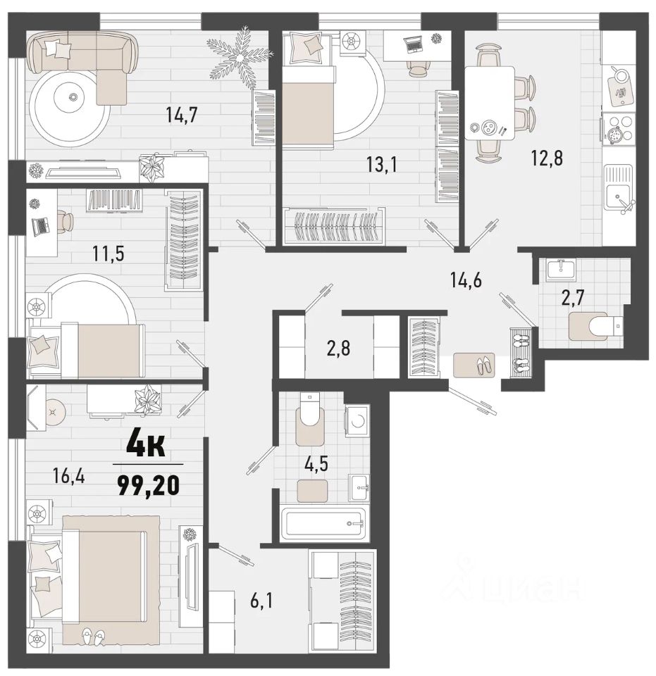 Продаётся 4-комнатная квартира в строящемся доме (Дом 3В), срок сдачи: II-кв. 2027, общей площадью 99.2 кв.м., на 1 этаже. Жилой комплекс ''Барса'' расположился в самом живописном Южном районе Новороссийска, всего в 15 минутах ходьбы от пляжа ''Алексино''. Море будет видно даже из окон невысоких этажей. Проект объединяет просторные квартиры с панорамными окнами, продуманные зоны отдыха и площадки для спорта, прогулочный бульвар, беседки и уникальные арт-объекты. В жилом комплексе запланированы детский сад на 380 мест и школа на 1 750 мест.