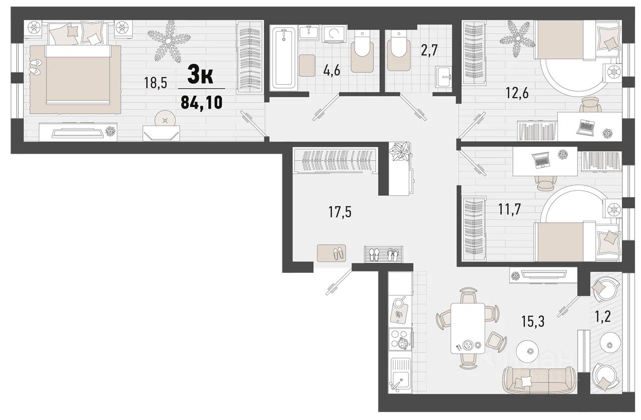 Продаётся 3-комнатная квартира в строящемся доме (Дом 4В), срок сдачи: II-кв. 2027, общей площадью 84.1 кв.м., на 14 этаже. Жилой комплекс ''Барса'' расположился в самом живописном Южном районе Новороссийска, всего в 15 минутах ходьбы от пляжа ''Алексино''. Море будет видно даже из окон невысоких этажей. Проект объединяет просторные квартиры с панорамными окнами, продуманные зоны отдыха и площадки для спорта, прогулочный бульвар, беседки и уникальные арт-объекты. В жилом комплексе запланированы детский сад на 380 мест и школа на 1 750 мест.