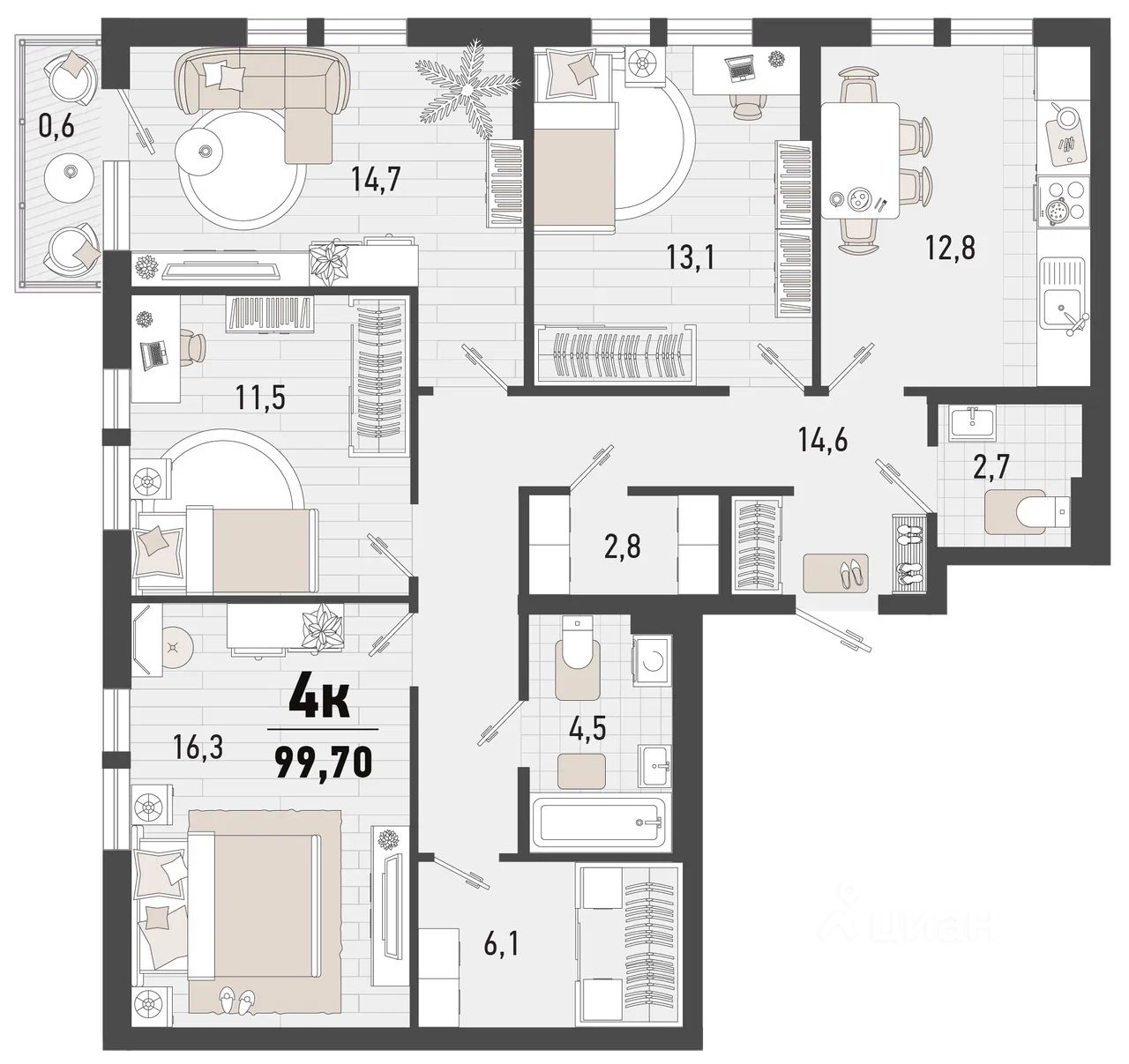Продаётся 4-комнатная квартира в строящемся доме (Дом 3В), срок сдачи: II-кв. 2027, общей площадью 99.7 кв.м., на 10 этаже. Жилой комплекс ''Барса'' расположился в самом живописном Южном районе Новороссийска, всего в 15 минутах ходьбы от пляжа ''Алексино''. Море будет видно даже из окон невысоких этажей. Проект объединяет просторные квартиры с панорамными окнами, продуманные зоны отдыха и площадки для спорта, прогулочный бульвар, беседки и уникальные арт-объекты. В жилом комплексе запланированы детский сад на 380 мест и школа на 1 750 мест.