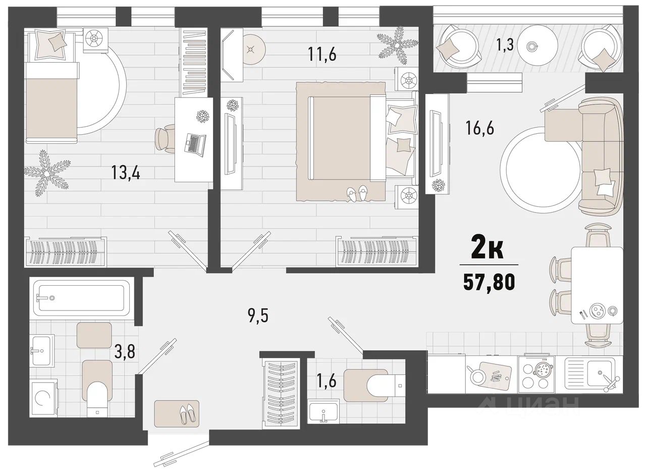 Продаётся 2-комнатная квартира в строящемся доме (Дом 4В), срок сдачи: II-кв. 2027, общей площадью 57.8 кв.м., на 2 этаже. Жилой комплекс ''Барса'' расположился в самом живописном Южном районе Новороссийска, всего в 15 минутах ходьбы от пляжа ''Алексино''. Море будет видно даже из окон невысоких этажей. Проект объединяет просторные квартиры с панорамными окнами, продуманные зоны отдыха и площадки для спорта, прогулочный бульвар, беседки и уникальные арт-объекты. В жилом комплексе запланированы детский сад на 380 мест и школа на 1 750 мест.
