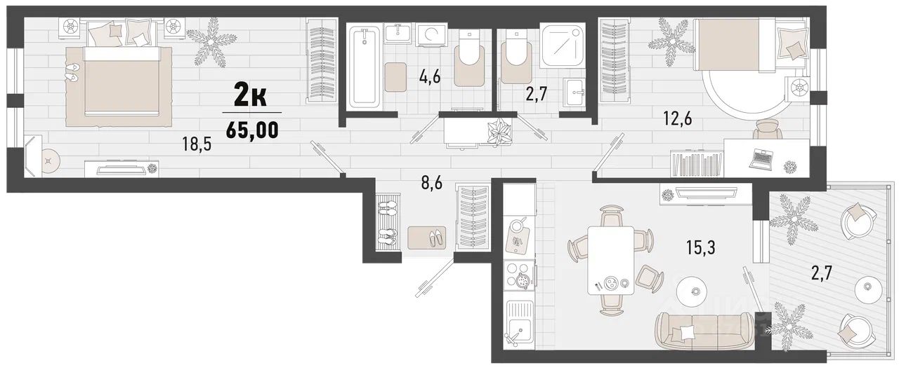 Продаётся 2-комнатная квартира в строящемся доме (Дом 4В), срок сдачи: II-кв. 2027, общей площадью 65 кв.м., на 3 этаже. Жилой комплекс ''Барса'' расположился в самом живописном Южном районе Новороссийска, всего в 15 минутах ходьбы от пляжа ''Алексино''. Море будет видно даже из окон невысоких этажей. Проект объединяет просторные квартиры с панорамными окнами, продуманные зоны отдыха и площадки для спорта, прогулочный бульвар, беседки и уникальные арт-объекты. В жилом комплексе запланированы детский сад на 380 мест и школа на 1 750 мест.