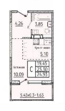 Общая площадь по документам 23.4 кв.м. + просторная лоджия 5.5 кв.м. с панорамным остеклением.