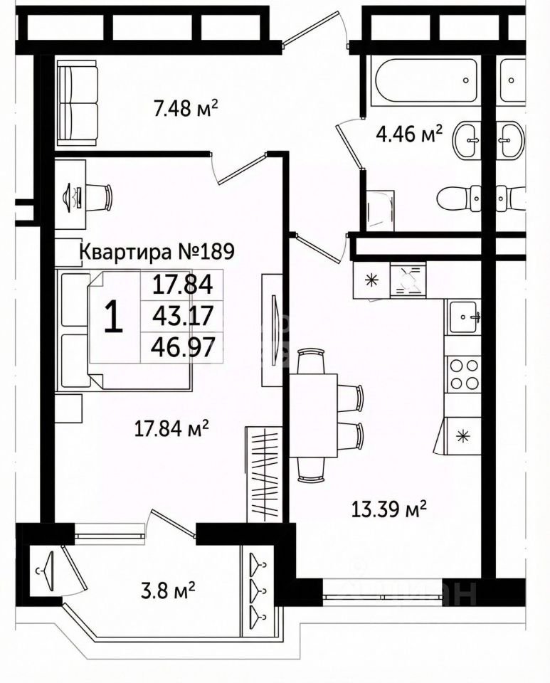 продам 1-к, Энгельса, 9311 800 000 ₽