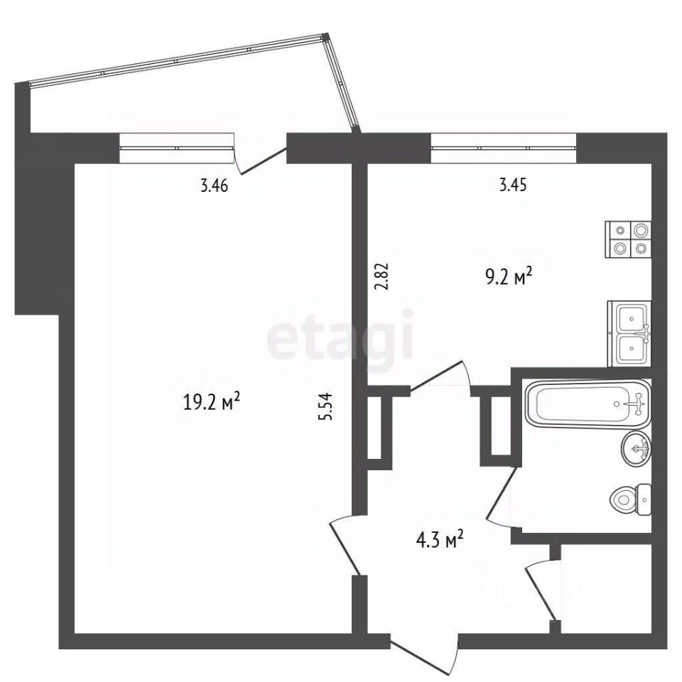 • Окна: выходят во двор • Общая площадь: 38,3 м² • Санузел: совмещенный • Балкон: застекленный • Коммуникации: центральные