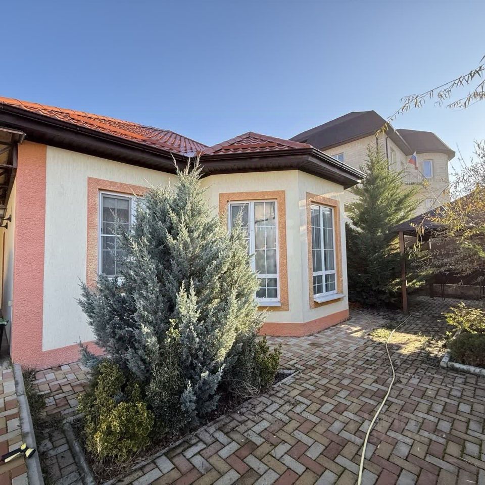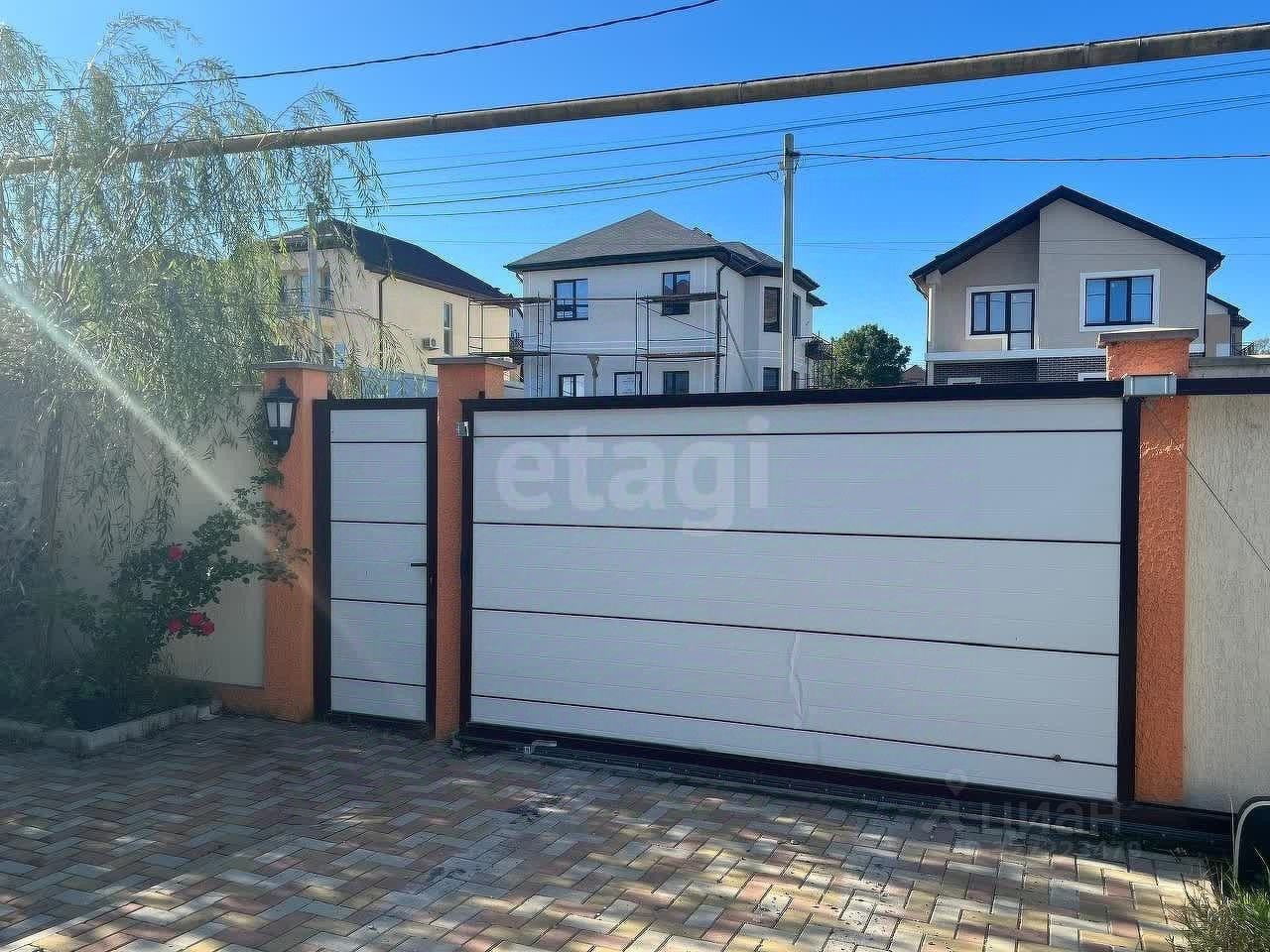 Дом огорожен блочным забором с автоматическими воротами на въезд во двор и гараж, компании Алютекс. Есть две скважины для дома и для двора, большой септик, имеется уютная беседка с мангалом. Молодой фруктовый сад, вечнозеленые деревья и розы. на участке стоит накопительный бак для полива сада. Так же есть место под строительство бани или хоз. пристройки.
