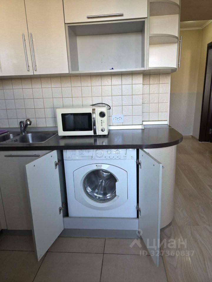 Кухня оснащена всей необходимой техникой: холодильником, плитой, микроволновой печью и стиральной машиной. Санузел совместный.