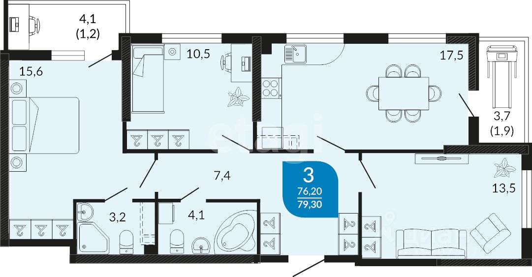 О квартире: Полноценная трёхкомнатная квартира с большой 17,1кв.м кухней-гостиной. Три изолированные комнаты. Все могут б.